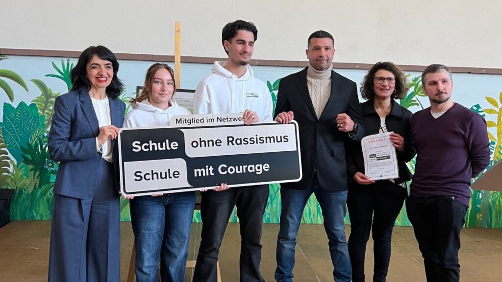 Am Mittwoch, 18.03.2026, war es soweit, wir sind mit einem Festakt in das bundesweite Netzwerk „Schule ohne Rassismus – Schule mit Courage“ aufgenommen worden. Wir freuen uns, dass Muhterem Aras und Armin Alman die Patenschaft übernommen haben.
