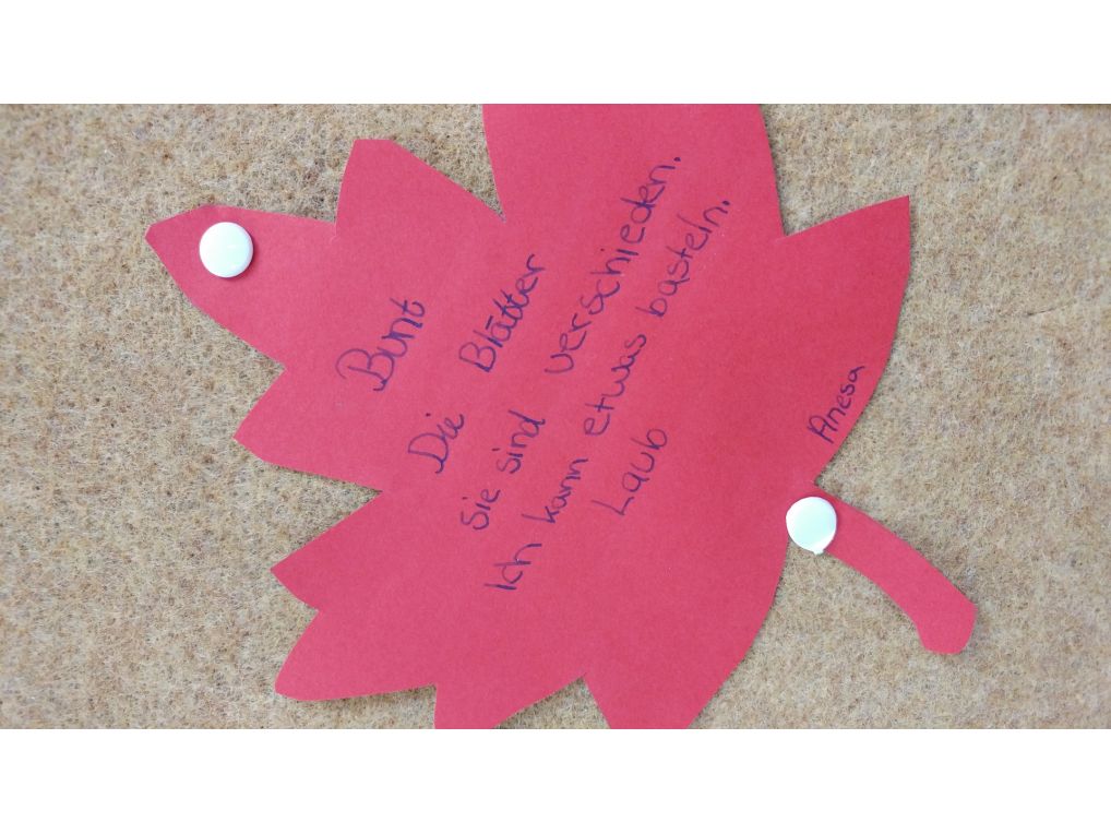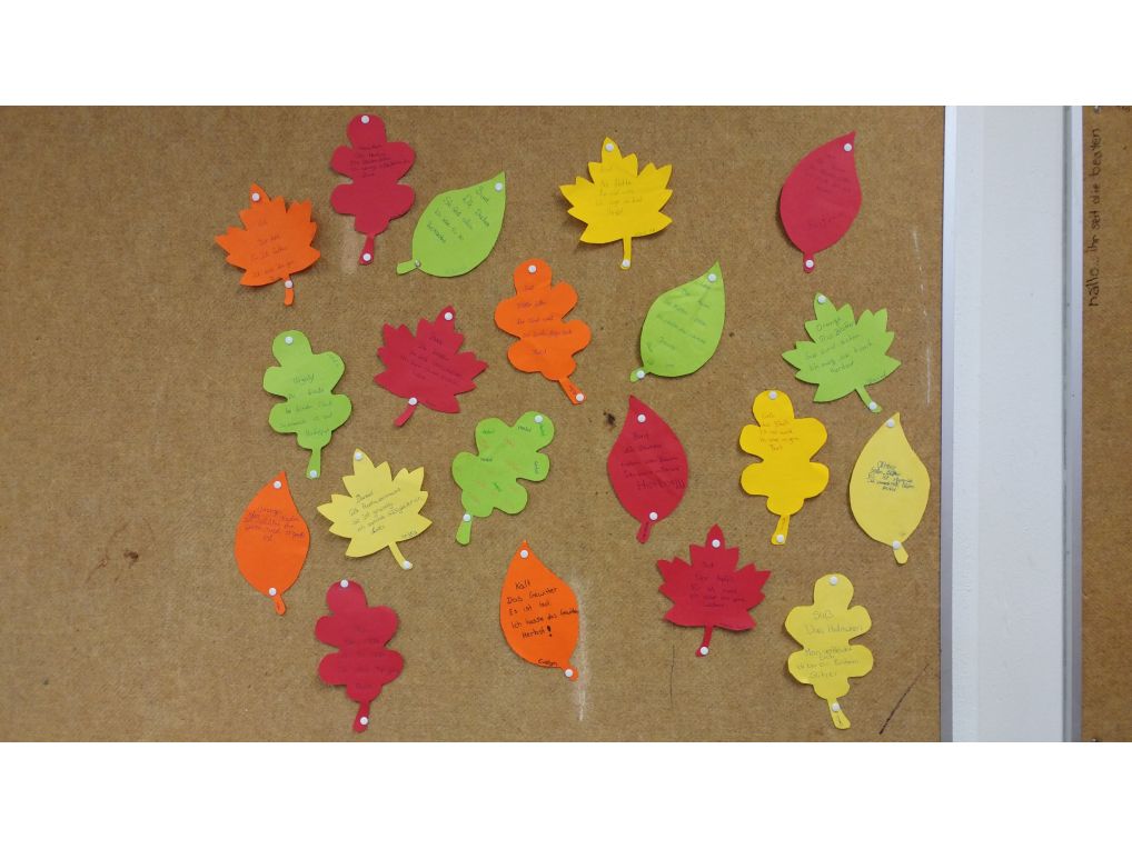 Das jeweils beste Ergebnis wurde auf einem selbstgesbastelten Herbstblatt festgehalten. Einige Ergebnisse kann man hier anschauen und lesen: