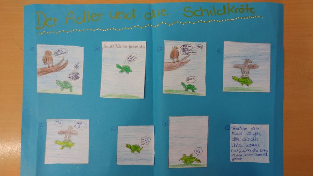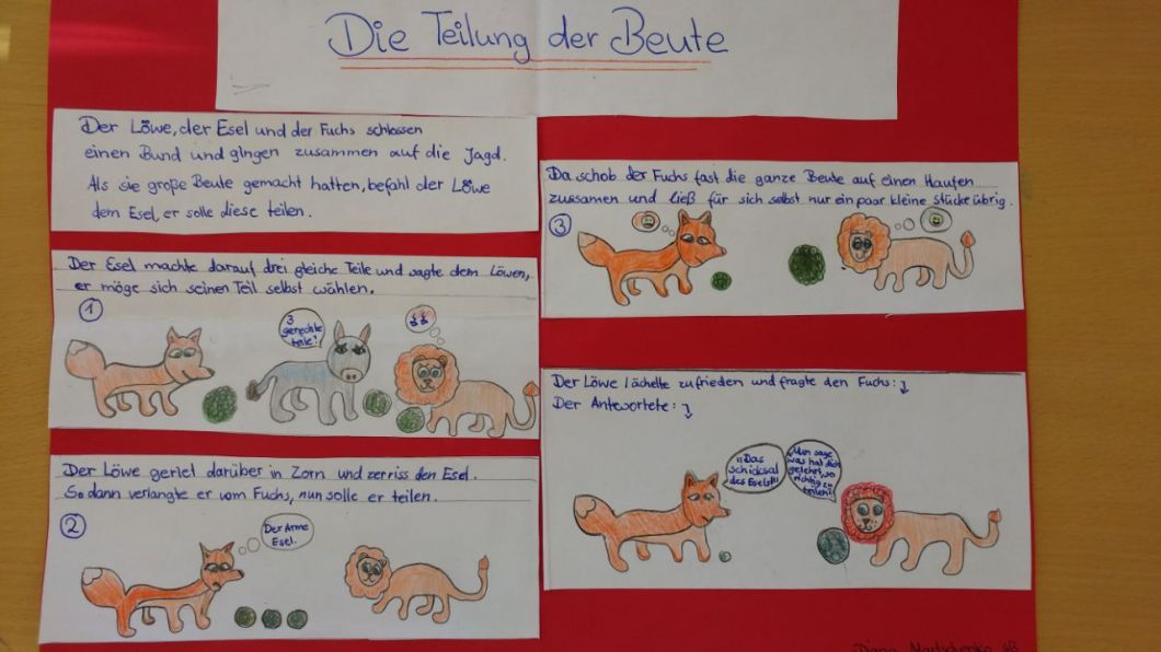Die 6b hat im Deutschunterricht im Sinne des handlungs- und produktionsorientierten Literaturunterrichts Fabeln als Bildergeschichten umgesetzt. Einige Ergebnisse kann man hier betrachten: